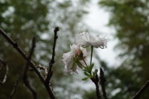 季節外れのボタン桜一枝開花、 半袖でも過ごせそうですが、 最低気温は日に日に下がり、長袖や羽織るものが必要になってきます。