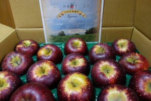 梅雨時期に雨が降らず小粒とのことですが、黒味を帯びた濃赤の珍しいと思えるりんご、美味しくごちそうになります。