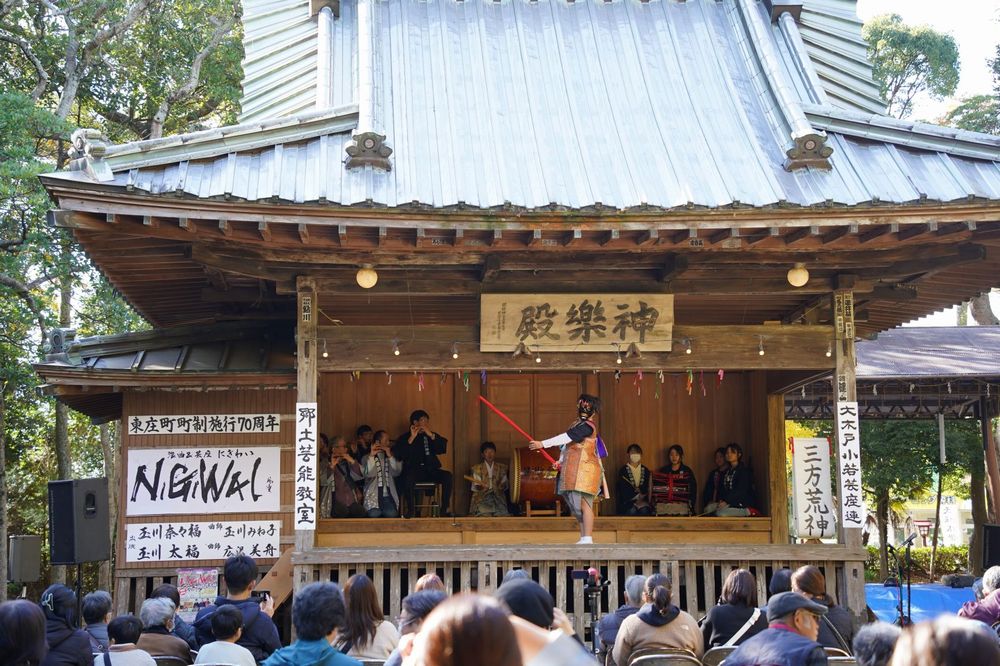 玉川奈々福さんには、東庄町観光大使を務めていただいており、神楽殿で東庄町町制施行70周年記念の表彰もさせていただきました。今後ともよろしくお願いいたします。