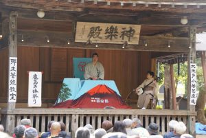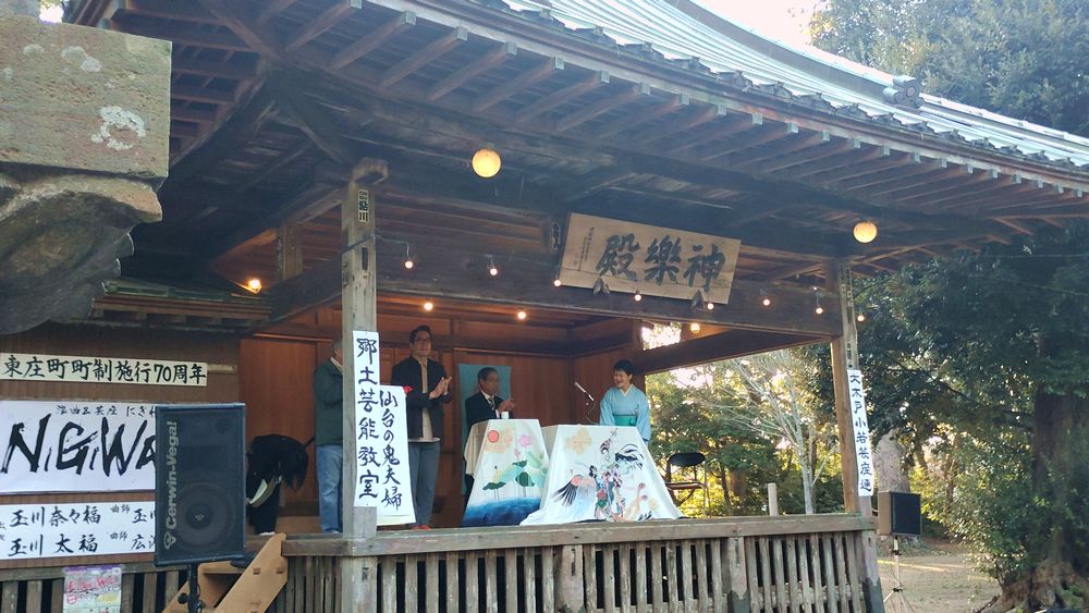 11/22・午前9時半、諏訪大神にて「浪曲&芸座 NIGIWAI」が、大利根にぎわい座主催、町内各種団体の後援により、東庄町地域活性化事業として開催されました。